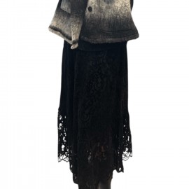 Apportez une touche d’élégance artisanale à votre garde-robe avec cette veste noire ornée de broderies blanches délicates.