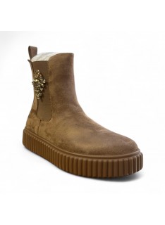 BOTTINES SUEDINES TAUPE AVEC BIJOU FIXE SUR LE COTE