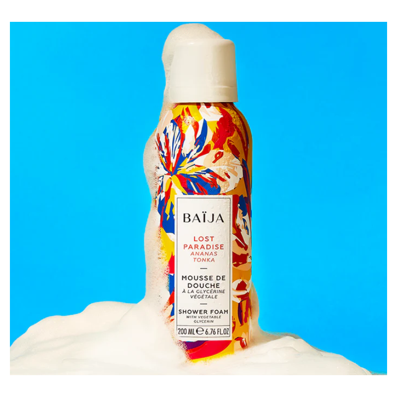 Notre mousse de douche onctueuse "Lost Paradise" allie les notes envoûtantes d’ananas juteux et de fève tonka pour un moment de pur plaisir.