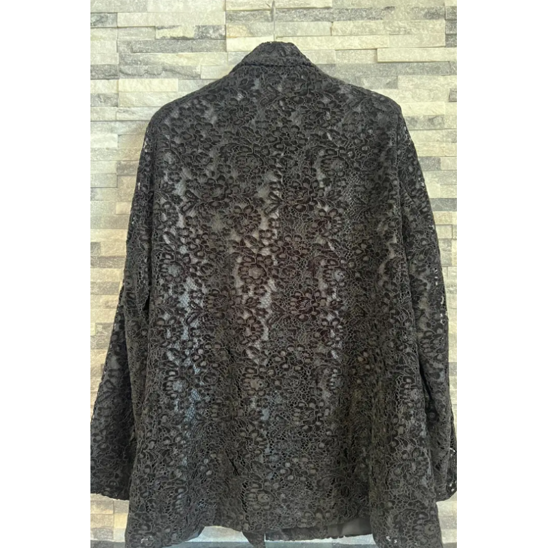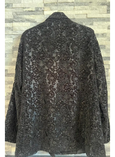 Apportez une touche d’élégance artisanale à votre garde-robe avec cette veste noire ornée de broderies blanches délicates.
