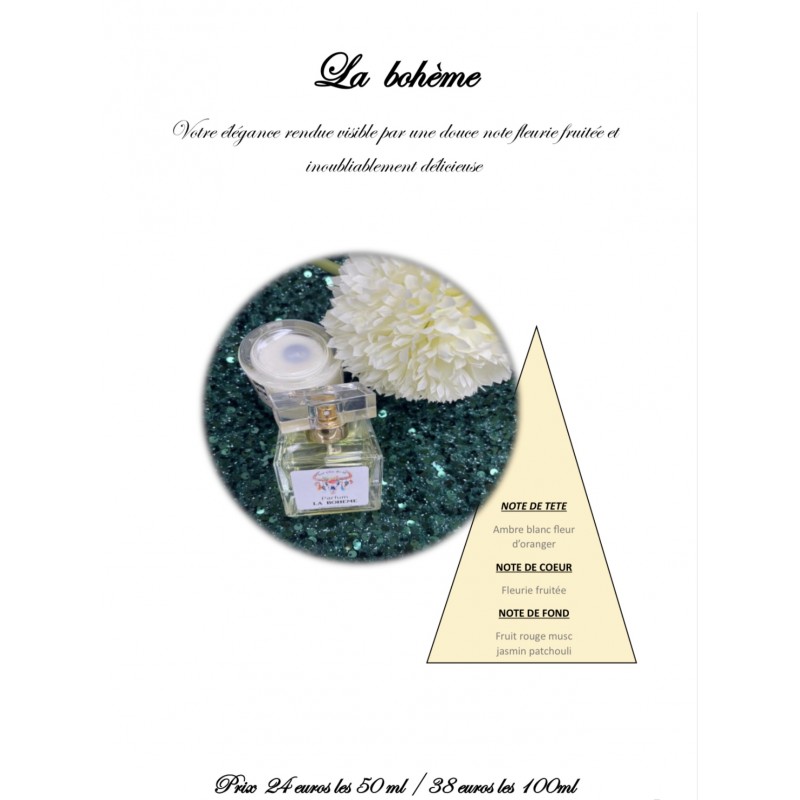 Fabriqué avec passion à Grasse, capitale mondiale du parfum, La Bohème est une fragrance qui révèle votre élégance naturelle à travers une alliance délicate de notes fleuries, fruitées et sensuelles.