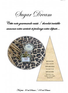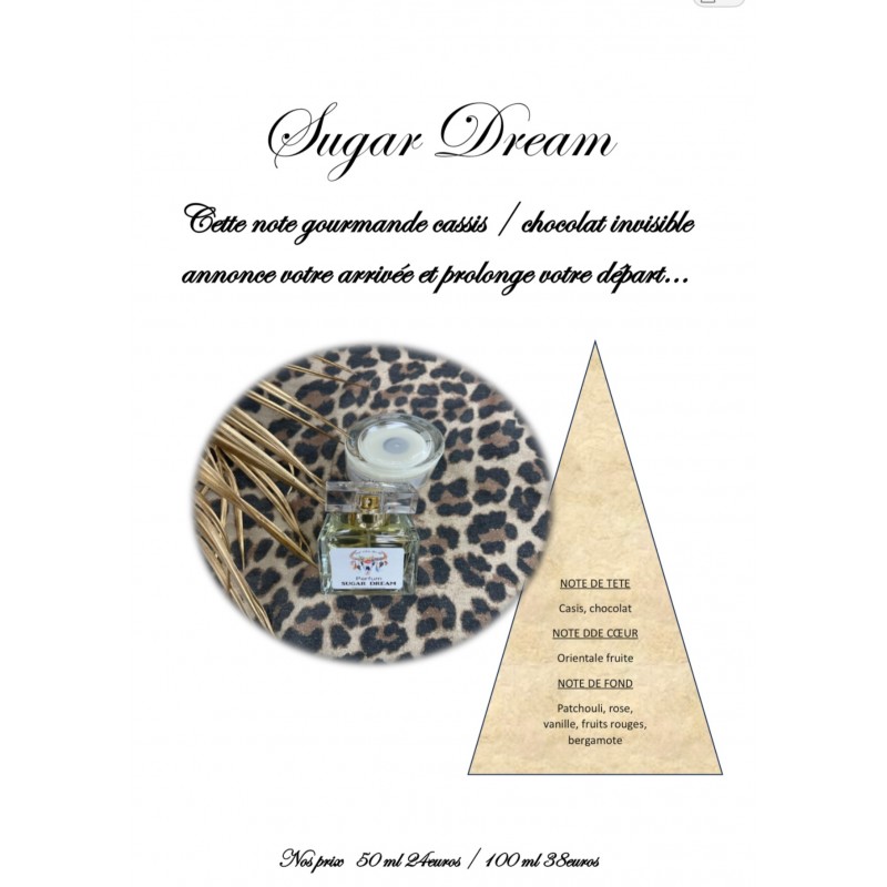 Sugar Dream, c’est l’alliance surprenante du cassis gourmand et d’un chocolat invisible, une touche audacieuse qui annonce votre arrivée et prolonge votre sillage… Élaboré à Grasse, ce parfum mêle intensité, sensualité et douceur dans un flacon raffiné.