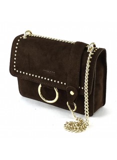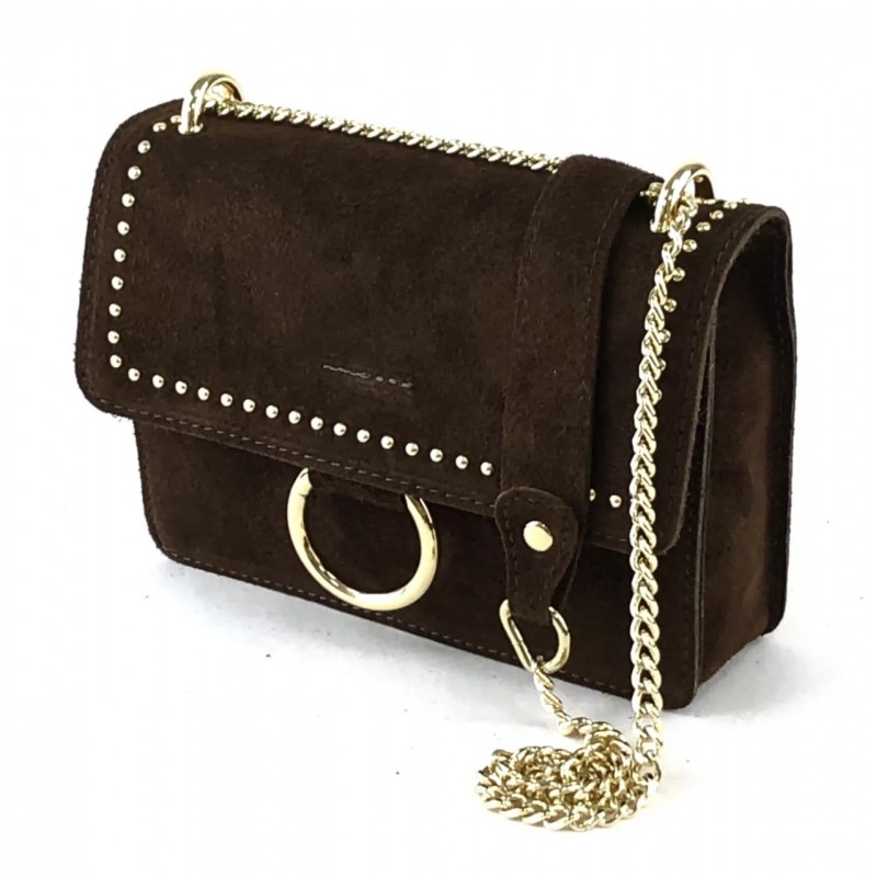 Pochette en cuir de 19 cm de largeur et 14 cm de hauteur, dotée d'un anneau décoratif et de clous tendance.